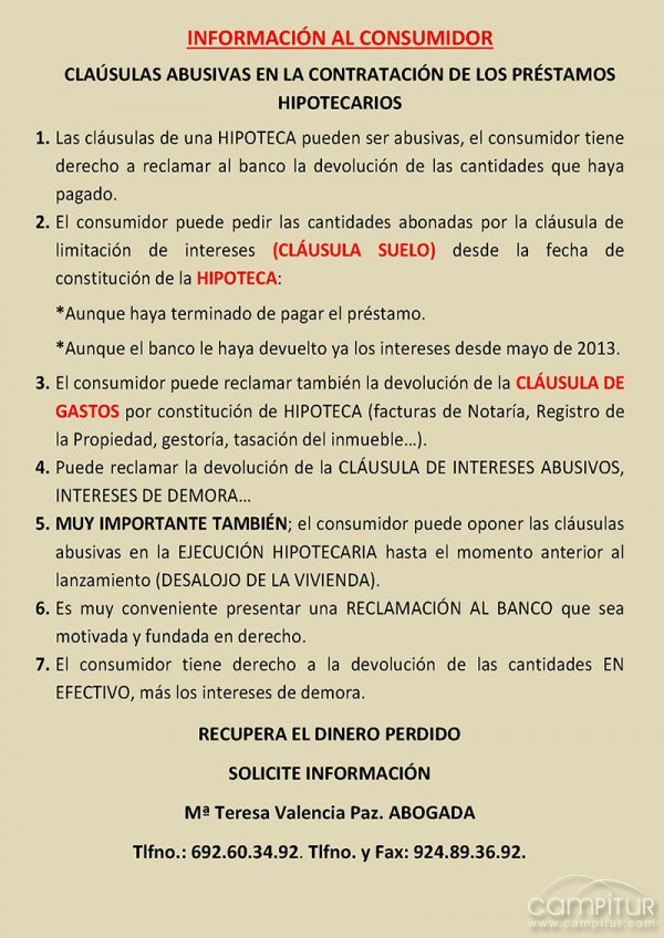 •CLAUSULAS ABUSIVAS EN LA HIPOTECA (clausula suelo, gastos por constitución de hipoteca).