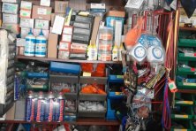 •Tornillos y tacos, Remaches, Barras de cortina y de armario, Rieles de cortina, Fieltro y colgadores adhesivos, Brocas, Bisagras, Pernios, Cadena, Malla (verde y metálica)