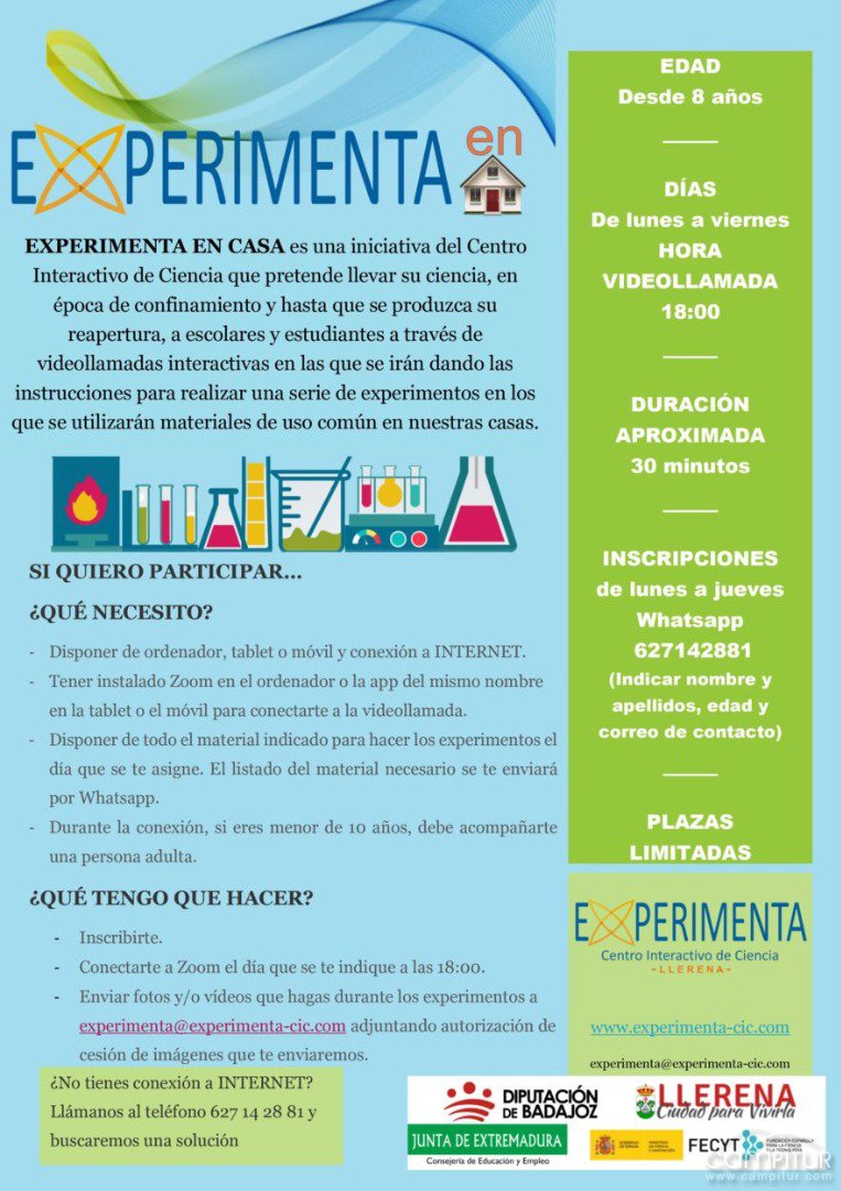 El Centro Interactivo de Ciencia pone en marcha “Experimenta en casa”. Se trata de una iniciativa para acercar su ciencia a escolares y estudiantes durante la época de confinamiento y mientras dure esta situación.