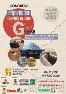Los próximos días 20, 21 y 22 de marzo tendrá lugar en Mérida, Campillo de Llerena y Castuera el Congreso “Patrimonio para después de una Guerra”, patrocinado por Diputación de Badajoz y organizado por los ayuntamientos de Campillo de Llerena y Castuera, la UNED de Mérida y la Asociación para el Estudio y Recuperación del Patrimonio Bélico Reciente “Frente Extremeño”.