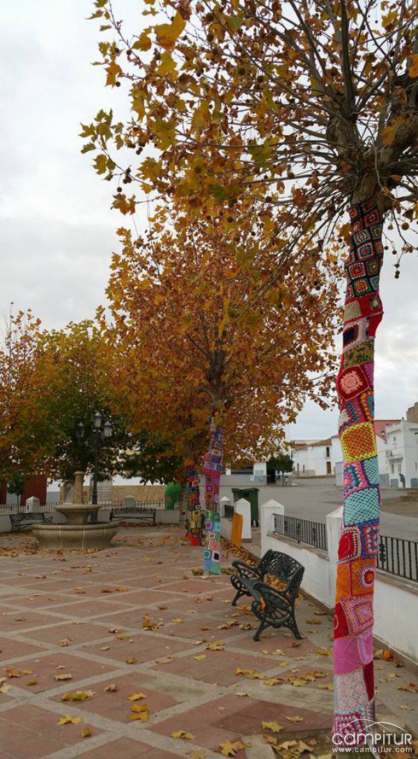 Hoy, todo aquel que se acerque hasta la Plaza de Valverde de Llerena, descubrirá como todos sus árboles lucen de manera especial, y es que las mujeres de la localidad, han “Tejido Valverde”.