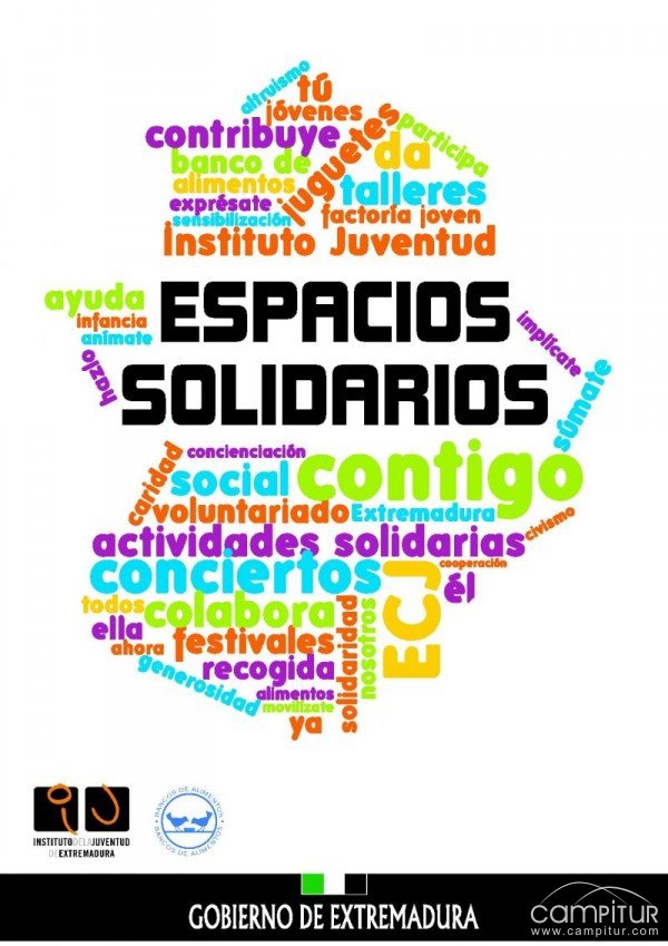 Espacios Solidarios es el nuevo proyecto puesto en marcha por el Instituto de Juventud de Extremadura, cuyo objetivo es el de acercar a los jóvenes extremeños la opción de canalizar su solidaridad, llevando a cabo para ello actividades encaminadas a la sensibilización y a la actuación ante situaciones de desigualdad e injusticias sociales.