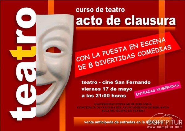 Desde la Universidad Popular de Berlanga informan de que el próximo día 17 de mayo, viernes, a partir de las 21:00 horas, se llevará a cabo el Acto de Clausura de la Escuela de Teatro.