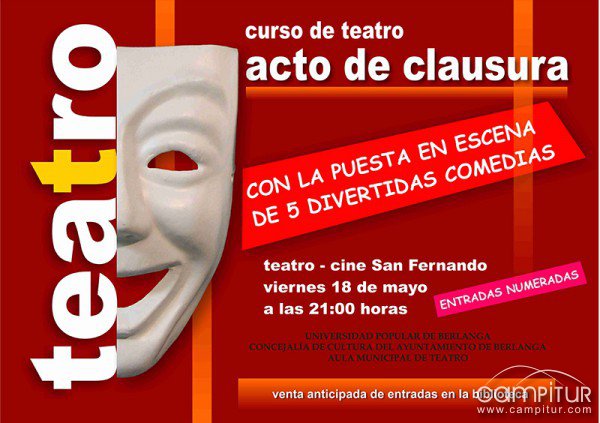 El viernes, 18 de mayo, Berlanga acoge la celebración del Acto de Clausura del Curso de Teatro que ha venido impartiéndose en la localidad pacense.