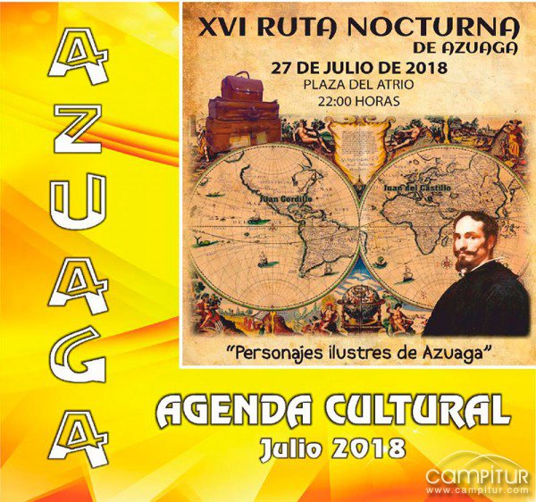 22:00 h.- XVI Ruta Nocturna “Personajes Ilustres de Azuaga”. Salida desde la Plaza del Atrio.