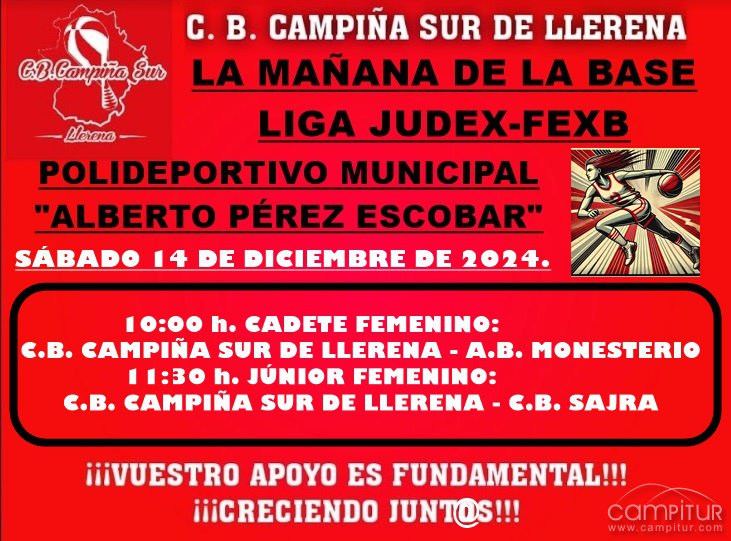 El próximo fin de semana, se juega la octava jornada para nuestros equipos de la BASE que compiten en JUDEX-FEXB. Será la última jornada del 2024. Nuestros equipos Masculino Infantil, Cadete y Júnior, jugarán fuera de casa. Los Infantiles juegan la tarde del viernes en la pista de A.B. Oliva y, la mañana del sábado en la pista del E.M.D. Jerez de los Caballeros, lo harán Cadetes y Juniors. Nuestros equipos Femeninos Cadete y Junior Femenino, juegan la mañana del sábado 14 de diciembre en el “Alberto Pérez”. Nuestro Infantil Femenino descansa.