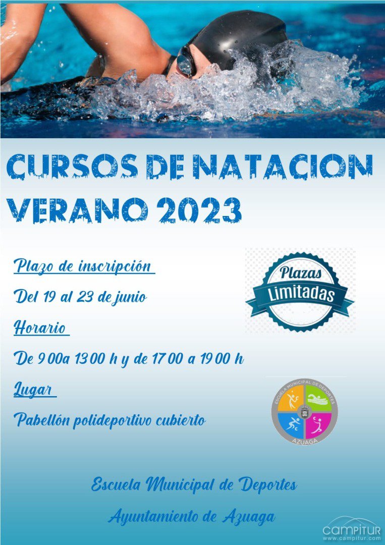 En cuanto a los Cursos de Natación para este verano 2023 en la localidad pacense, se ofertarán plazas limitadas, pudiendo formalizar la inscripción a los mismos, el próximo lunes, 19 de junio, hasta el viernes, 23, en horario de mañana (09:00 a 13:00 h) y de tarde (17:00 a 19:00 h), en el Pabellón Cubierto.