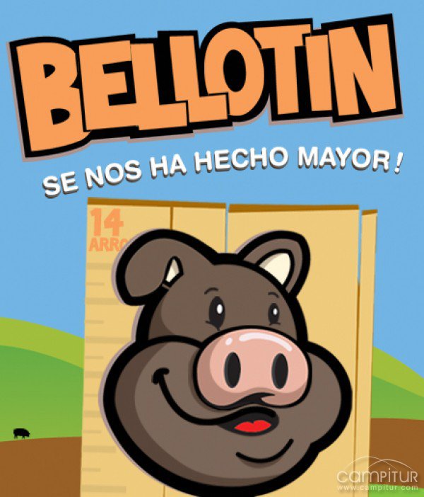 Nuestra mascota, la mascota de la Campiña Sur Extremadura,  ha crecido, y mucho. No ha dejado ni que maduren aun las bellotas y ya se ha zampado todas las de la Campiña Sur. Como consecuencia, Bellotín ha pegado un enorme estirón, y no solo en cuanto a tamaño, sino que se nos está haciendo todo un marranito cogiendo un hermoso color ibérico de extremadura.