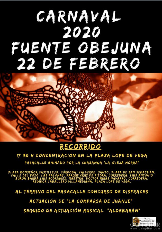 El sábado, 22 de febrero, Fuente Obejuna celebra su Carnaval 2020, y para ello, desde el Ayuntamiento de la localidad se han organizado varios actos.