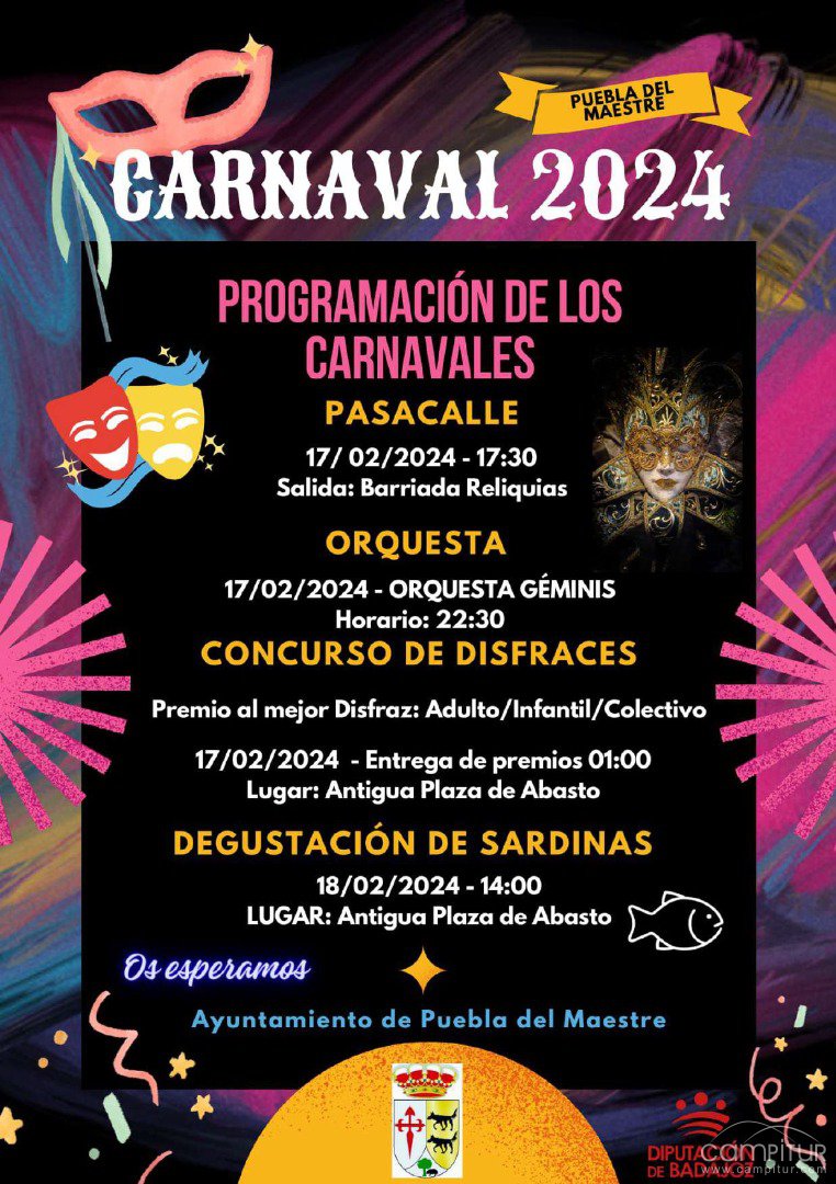 El Ayuntamiento de Puebla del Maestre ultima los preparativos para la celebración, el próximo sábado 17 de febrero, de su Carnaval 2024.