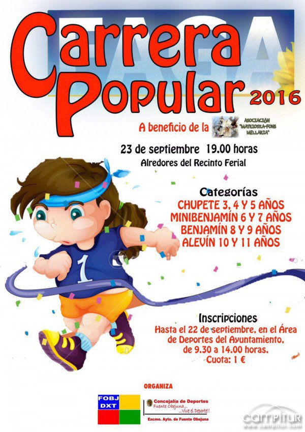 La Concejalía de Deportes del Ayuntamiento de Fuente Obejuna organiza la celebración de una Carrera Popular a beneficio de la Asociación “Matrioska-Fons Mellaria” el próximo 23 de septiembre.