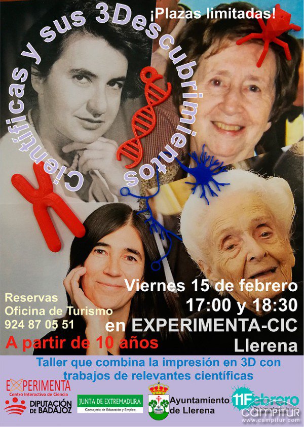 Con motivo de la conmemoración del Día de Internacional de la Mujer y la Niña en la Ciencia, el Centro Interactivo de Ciencia – Experimenta de Llerena organiza el taller “Científicas y sus 3Descubrimientos”.