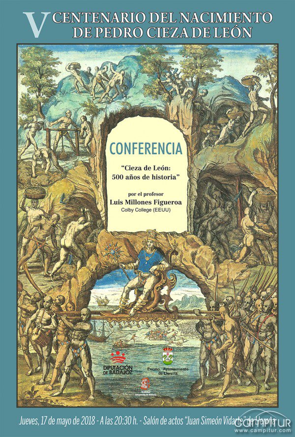 El próximo jueves, 17 de mayo, el Salón Juan Simeón Vidarte del Complejo Cultural La Merced de Llerena acoge la impartición de una Conferencia bajo el título “Cieza de León, 500 años de historia”.