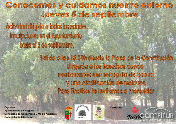 El Ayuntamiento de Maguilla, desde sus Concejalías de Caza, Pesca y Medio Ambiente y de Educación, Universidad Popular y Biblioteca Municipal, ha organizado una actividad dirigida a conocer y cuidar el entorno.