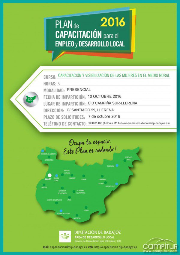 Llerena acogerá la impartición del curso “Capacitación y visualización de las mujeres en el medio rural”, que se desarrollará en el Centro Integral de Desarrollo Campiña Sur.