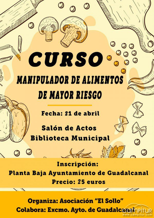 El viernes, 21 de abril, Guadalcanal acoge la celebración de un Curso de Manipulador de Alimentos de Mayor Riesgo, organizado por la Asociación “El Sollo”, y contando con la colaboración del Ayuntamiento de Guadalcanal.