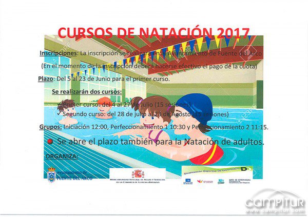 Desde el Ayuntamiento de Fuente del Arco informan de la apertura del plazo para presentar las inscripciones para los Cursos de Natación 2017.