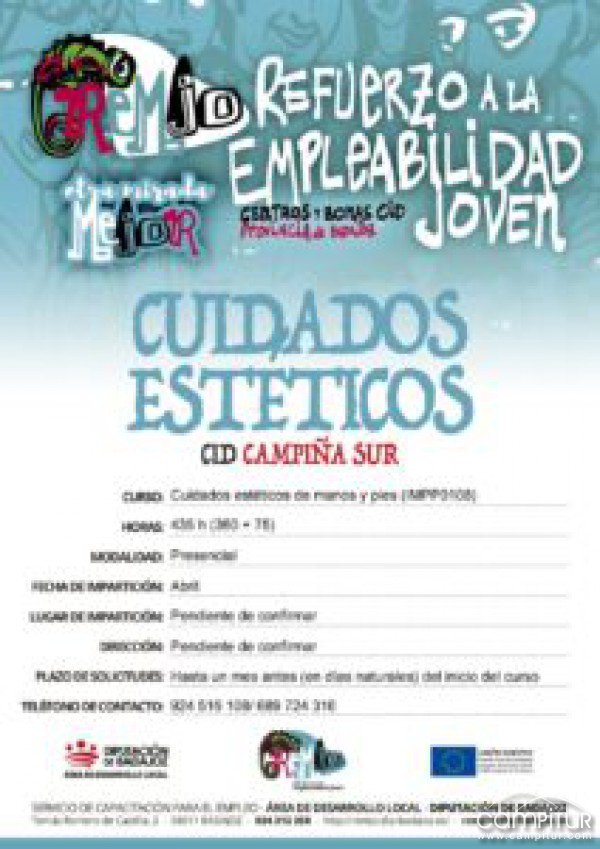En concreto, para el ámbito geográfico del CID Campiña Sur, la acción formativa que se va a desarrollar es el Certificado de Profesionalidad “Cuidados Estéticos de Manos y Pies”. El programa tiene una duración total de 435 horas y está previsto que comience en el mes de abril.