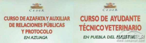 • Azafata y Auxiliar de Relaciones Públicas y Protocolo: Será desarrollado en la localidad de Azuaga e impartido por la empresa INETCOM. Las clases se impartirán en horario de mañana, teniendo una duración esta formación de 80 horas. El número de plazas será de 20 alumnos, los cuales recibirán clases tanto teóricas como prácticas.