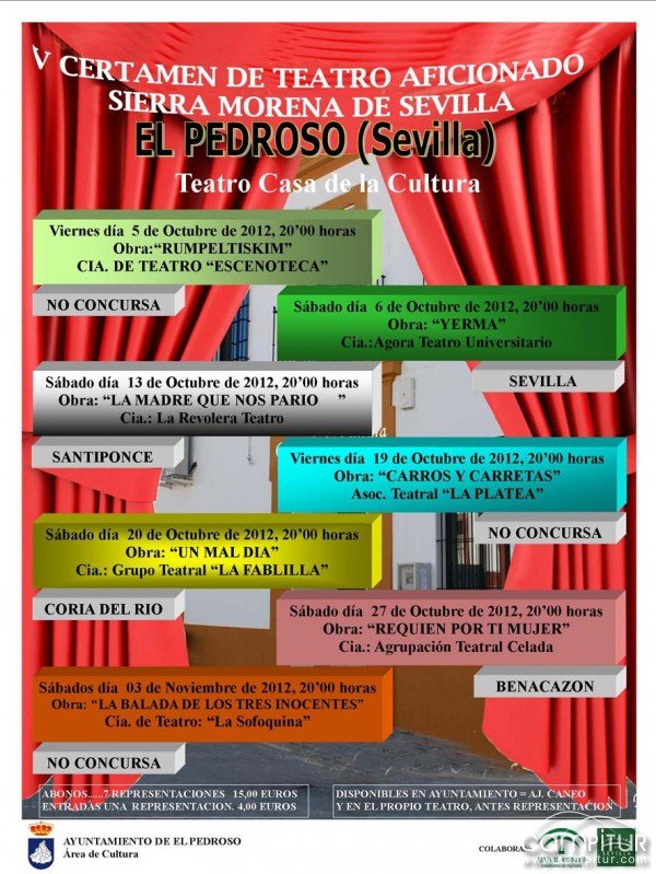 Desde el Área de Cultura del Ayuntamiento del Pedroso, se ultiman los preparativos para la celebración del V Certamen de Teatro Aficionado Sierra Morena de Sevilla, que por quinto año consecutivo se celebra en esta localidad sevillana.