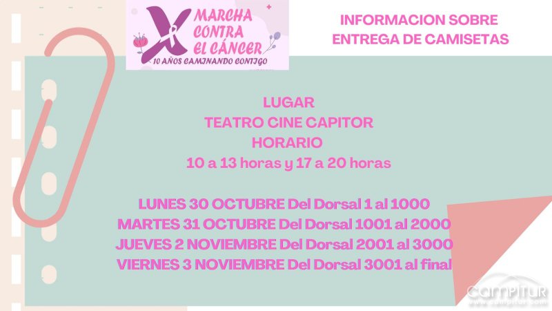 A partir de hoy, miembros de la Junta Local de la AECC procederán a repartir las camisetas a aquellas personas que se hayan inscrito dentro de la fecha correspondiente.