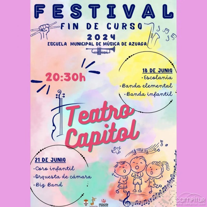 La Escuela Municipal de Música de Azuaga se complace en anunciar su esperado Festival de Fin de Curso, que se llevará a cabo los días 18 y 21 de junio en el Teatro Cine Capitol. Este evento marca el cierre del año académico y celebra los logros de sus talentosos estudiantes.