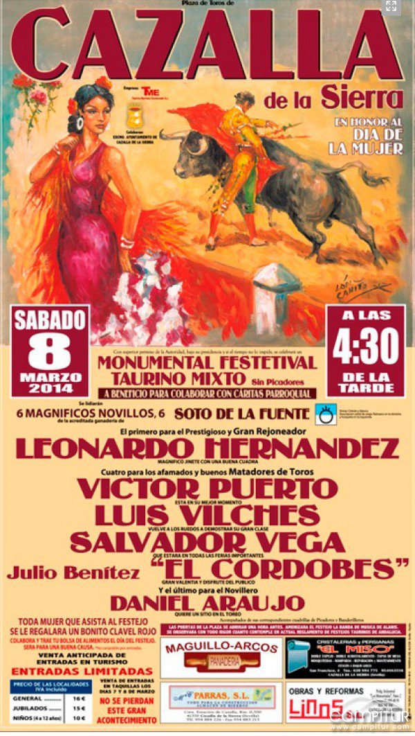 En honor al Día de la Mujer, el próximo sábado, 8 de marzo, la localidad sevillana de Cazalla de la Sierra acoge la celebración de un Festival Taurino Mixto con 6 novillos de Soto de la Fuente.