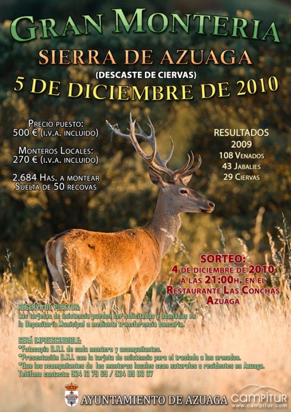 A pesar de que aún queda casi dos meses para que se lleve a cabo La Gran Montería en la Sierra de Azuaga 2010, ya se están ultimando los preparativos para tan popular evento.