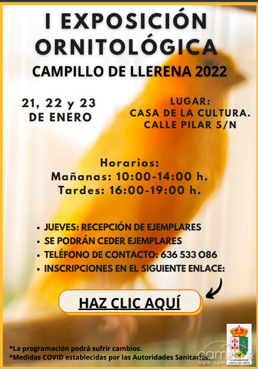 Campillo de Llerena acoge la celebración de la I Exposición Ornitológica, durante los días 21, 22 y 23 de enero, viernes, sábado y domingo.