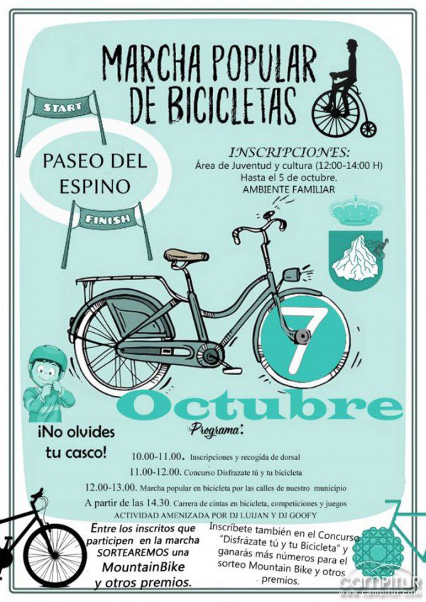 Desde el Área de Cultura y Juventud del Ayuntamiento de El Pedroso nos dan a conocer la I Marcha Popular de Bicicletas que tendrá lugar el próximo domingo 7 de octubre en el paseo del Espino.
