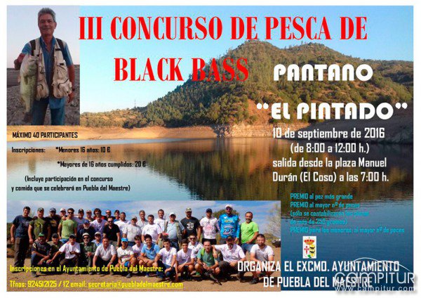 El Ayuntamiento de Puebla del Maestre organiza, por tercer año consecutivo, la celebración del III Concurso de Pesca de Black Bass en el Pantano “El Pintado”.
