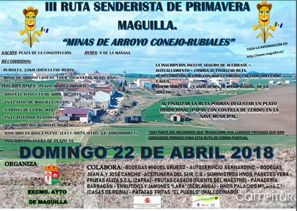 El domingo, 22 de abril, se llevará a cabo la III Ruta Senderista de Primavera “Minas de Arroyo Conejo – Rubiales” en Maguilla.