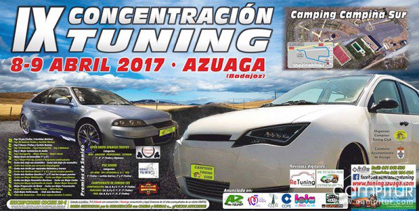 El sábado 8 y domingo 9 de abril, Azuaga acoge la IX Concentración Tuning 2017, que en esta ocasión se celebrará en el Camping Campiña Sur.