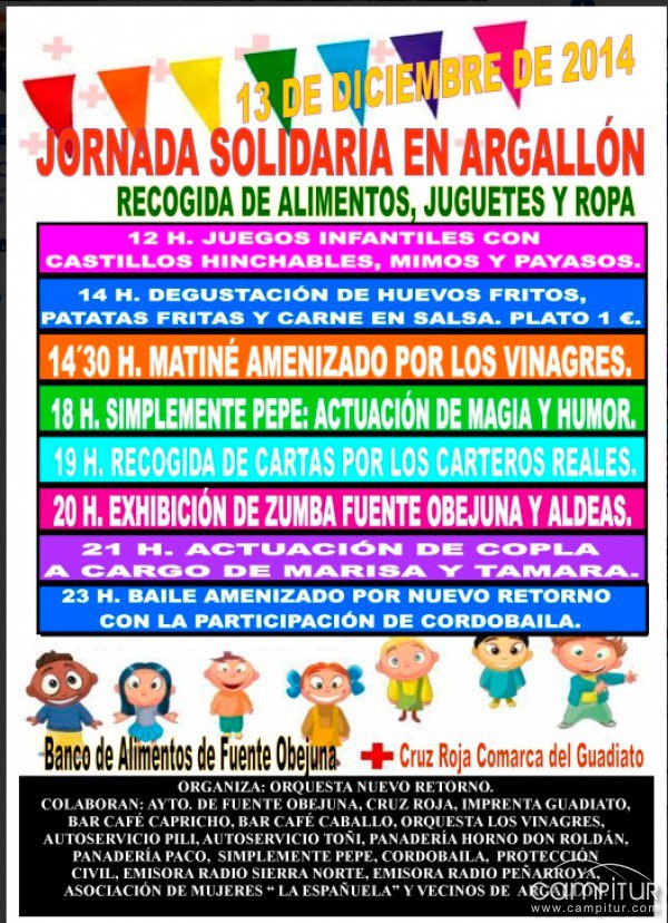 El sábado, 13 de diciembre, la aldea de Fuente Obejuna, Argallón, organiza la celebración de una Jornada Solidaria con el objetivo de llevar a cabo una importante recogida de alimentos, juguetes y ropa.