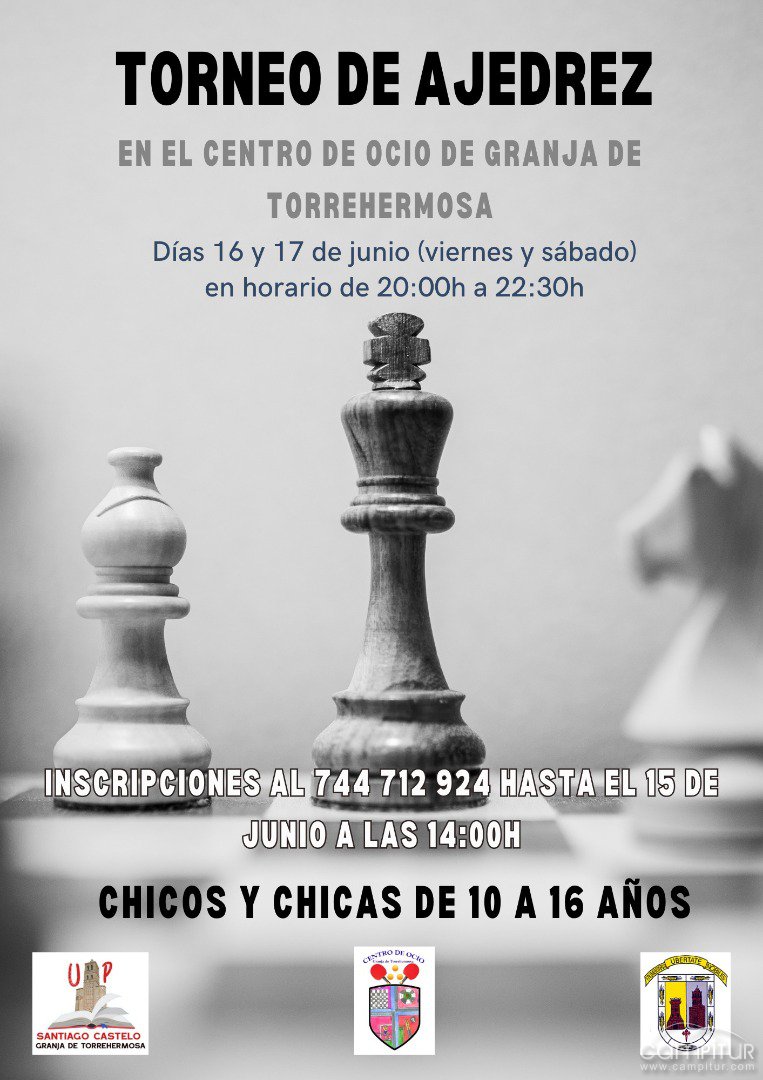Serán los días 16 y 17 de junio, viernes y sábado, en horario de 20:00 a 22:30 horas, cuando den comienzo estas jornadas, en concreto, estos días, se llevará a cabo un Torneo de Ajedrez.