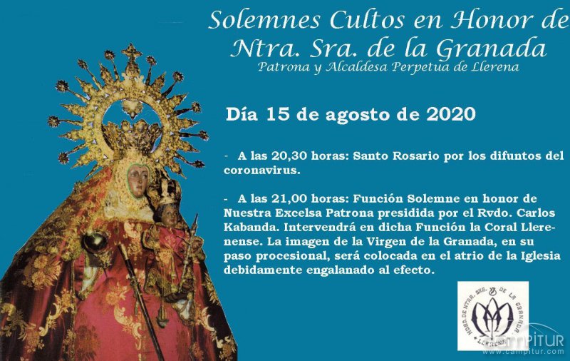 Esta decisión ha sido trasladada a la Hermandad de Nuestra Señora de la Granada, con la recomendación de suspender el acto religioso que iba a tener lugar al aire libre en la Plaza de España programada para el 15 de agosto. Por este motivo, la Hermandad nos ha hecho saber que modifican el emplazamiento del acto religioso a la Iglesia de Nuestra Señora de la Granada, hasta completar el aforo máximo permitido.