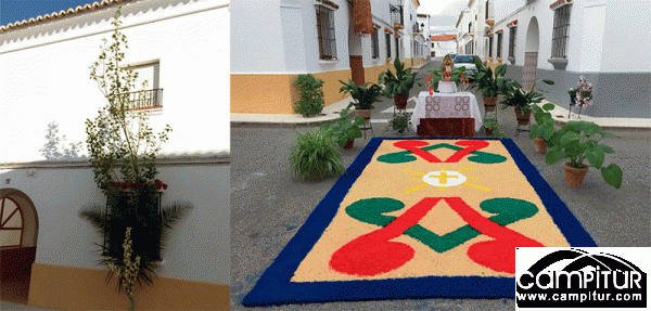 Son los vecinos los encargados de engalanar las calles para el paso de la procesión del Corpus, acompañado por los niños y niñas vestidos de comunión. Improvisados altares se alzan en preciosas calles cubiertas por verdaderas obras de arte. Alfombras elaboradas con serrín tintando de diferentes colores con los que el pueblo expresa su cultura de forma libre.