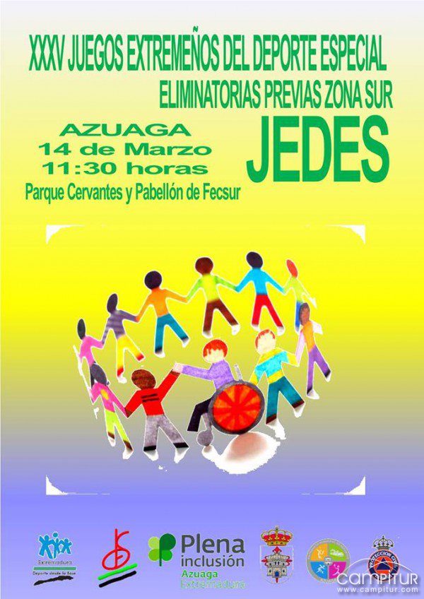 El jueves, 14 de marzo, la localidad pacense de Azuaga acogerá la celebración de los XXXV Juegos Extremeño del Deporte Especial, JEDES, Eliminatorias Previas zona Sur.
