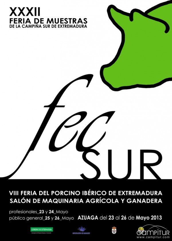 Como cada año desde hace 32, la última semana del mes de mayo los azuagueños darán la bienvenida a la FECSUR, la feria de muestras agrícola y ganadera de referencia del sur de Extremadura. A la vez que la FECSUR se celebrará la VIII Feria del Porcino Ibérico en Extremadura y el Salón de Maquinaria Agrícola y Ganadera.