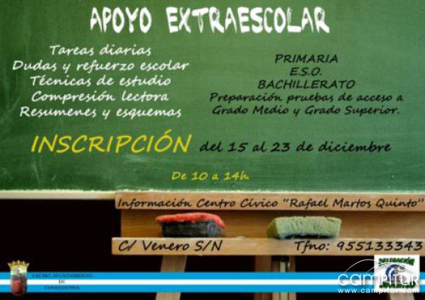 Con el objetivo de ayudar a mejorar los resultados escolares del alumnado de Constantina, el Área de Juventud del Ayuntamiento de la localidad pone en marcha un programa gratuito de apoyo extraescolar para todos los niveles educativos.