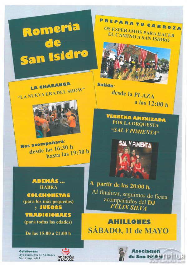 Ahillones celebra, el próximo día 11 de mayo, su tradicional Romería en Honor a San Isidro Labrador.