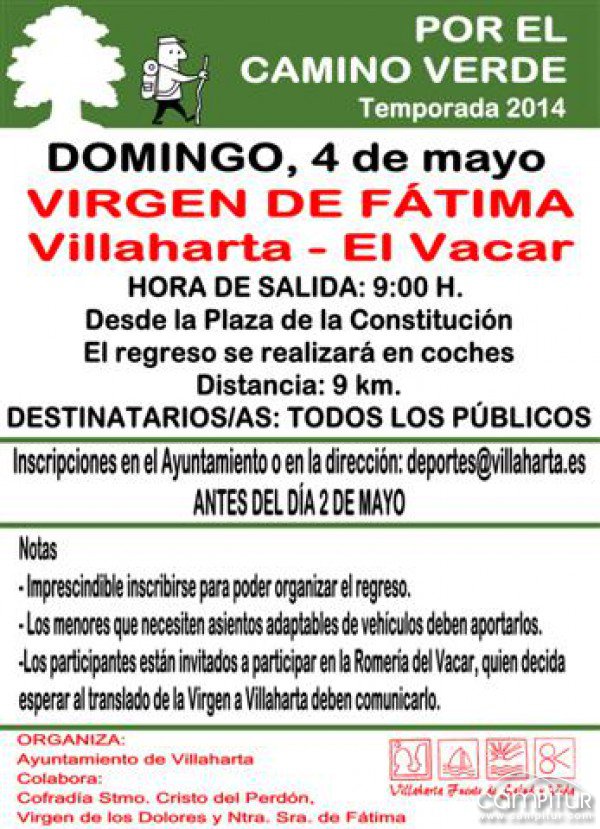 El Ayuntamiento de Villaharta organiza, con la colaboración de la Cofradía Smo. Cristo del Perdón, Virgen de los Dolores y Ntra. Sra. De Fátima, una nueva ruta senderista la cual, en esta ocasión, transcurrirá por Virgen de Fátima. Villaharta – El Vacar.