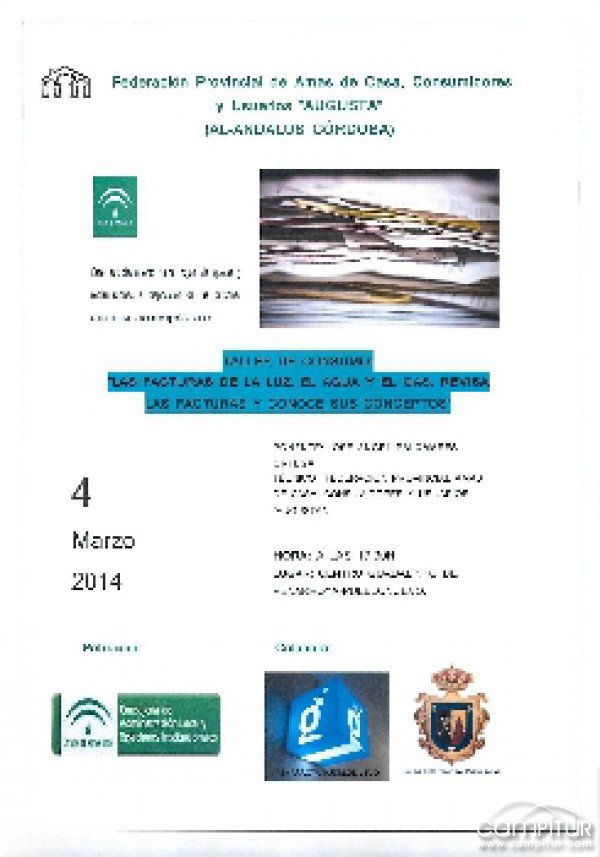 Hoy martes, 4 de marzo, tendrá lugar en Peñarroya-Pueblonuevo un Taller de Consumo denominado “Las facturas de la luz, el agua y el gas. Revísalas y conoces sus conceptos”.