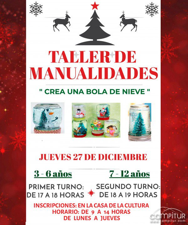 El Ayuntamiento de Granja de Torrehermosa pone en marcha la impartición de un entretenido taller dirigido a los más pequeños de la casa. En concreto se trata de un Taller de Manualidades para “Crear una Bola de Nieve”.