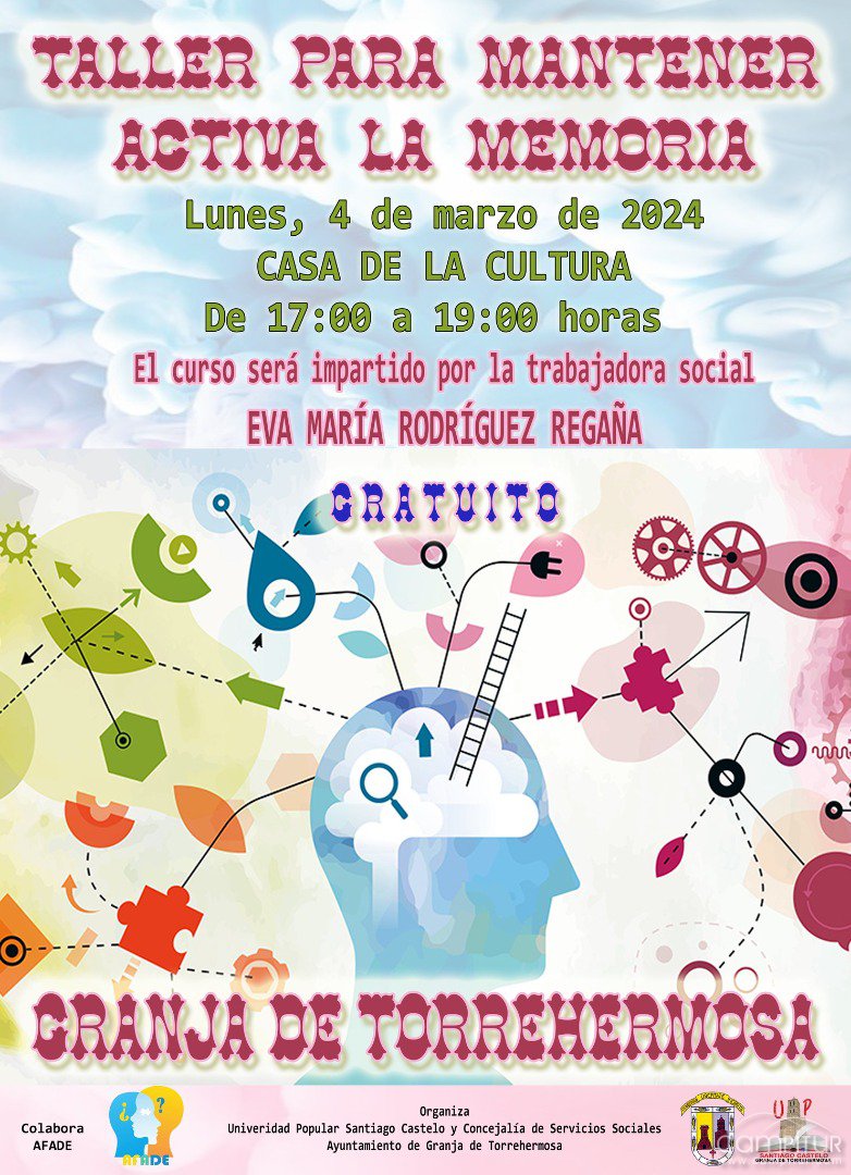 La Universidad Popular Santiago Castelo y la concejalía de Servicios Sociales del Ayuntamiento de Granja de Torrehermosa organizan un Taller para Mantener Activa la Memoria, el cual cuenta con la colaboración de AFADE.