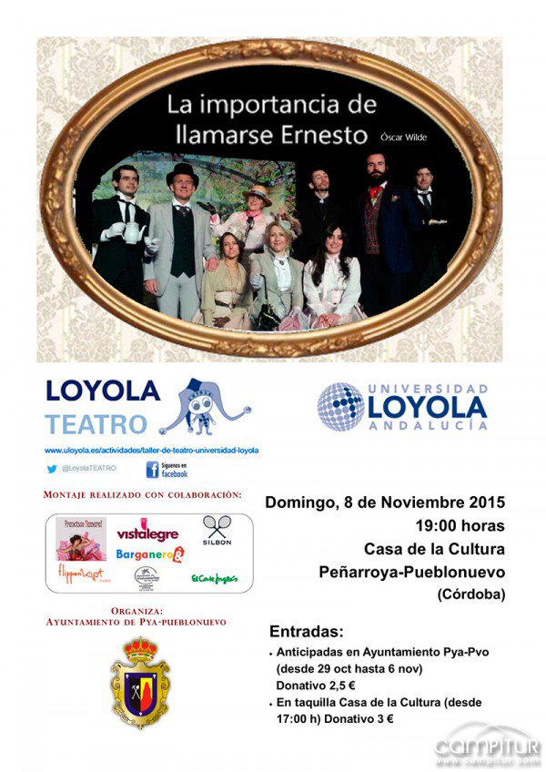 El domingo, 8 de noviembre, la Casa de la Cultura de Peñarroya-Pueblonuevo acoge la puesta en escena de la obra de teatro “La importancia de llamarse Ernesto”, a cargo de la compañía Loyola Teatro.