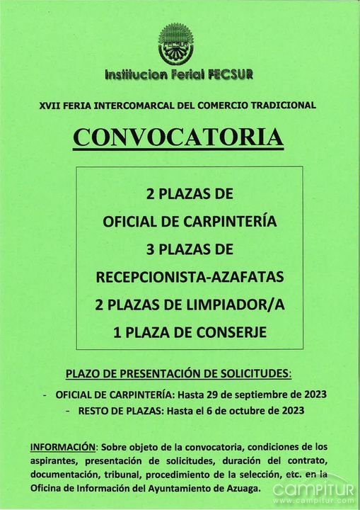 La Institución Ferial Fecsur convoca varias plazas para cubrir los trabajos para la próxima Feria del Comercio.