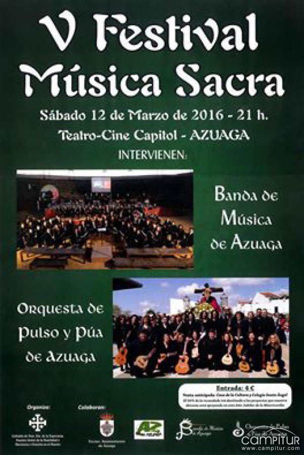 El próximo sábado, 12 de marzo, Azuaga acoger la celebración el V Festival de Música Sacra, a cargo de la Orquesta de Pulso y Púa de Azuaga y de la Banda Municipal de Música de la localidad.
