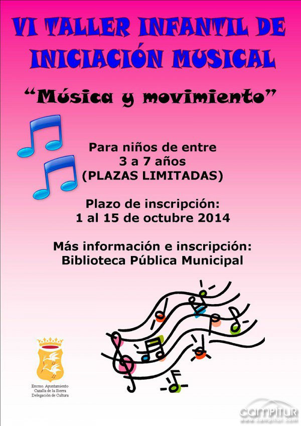 La Delegación de Cultura del Ayuntamiento de Cazalla de la Sierra organiza un año más su VI Taller Infantil de Iniciación Musical “Música y Movimiento”.