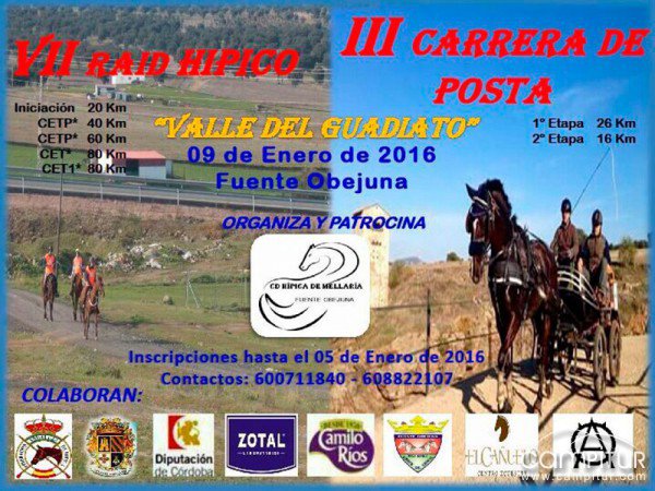 El próximo sábado, 9 de enero, Fuente Obejuna acoge la celebración de la VII Raid Hípico. III Carrera de Posta “Valle del Guadiato”, organizada un año más por el CD Hípica de Mellaría Fuente Obejuna.